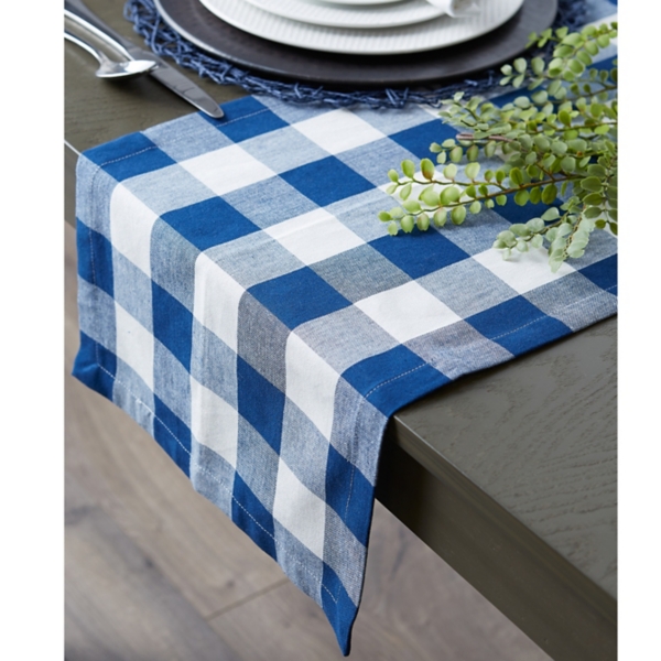All of dii cotton table runners have a 1 inch folded hem and mitered corners. Holidays weddings party designer fabric snowy blue 12 x 72 table runner farmhouse table runner. This blue buffalo check 16 x 108 table runner would look fabulous on your table or buffet. View product x close. This cotton twill table runner will add a unique, seasonal touch to your home.
