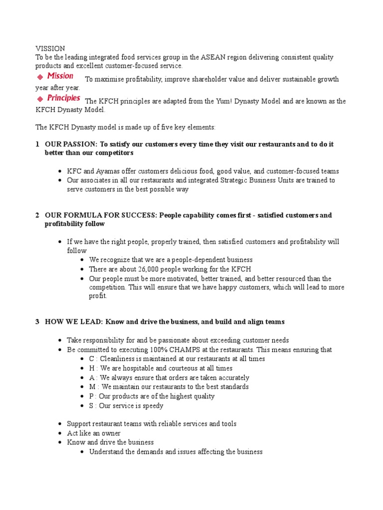 Visi Misi Dan Objektif Kfc / Misi adalah tindakan yang berkaitan dengan misi: