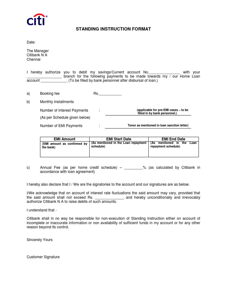 Standing Instructions Format Interest Loans from imgv2-2-f.scribdassets.com What is a standing instruction? Si stands for standing instruction. Asking a bank to issue standing instructions. If you have any queries do comment. What is the correct usage of the phrase standing instructions in a sentence. What is the meaning of si abbreviation? The standing instructions feature facilitates periodic scheduled payments for funds transfer, third party payment, and rtgs/neft/state bank group transactions. A standing instruction is created when a customer logs in to the citidirect® platform and enters transaction details one time for a payment that is to be repeated at scheduled dates determined by the customer, e.g., the customer enters one standing instruction for.